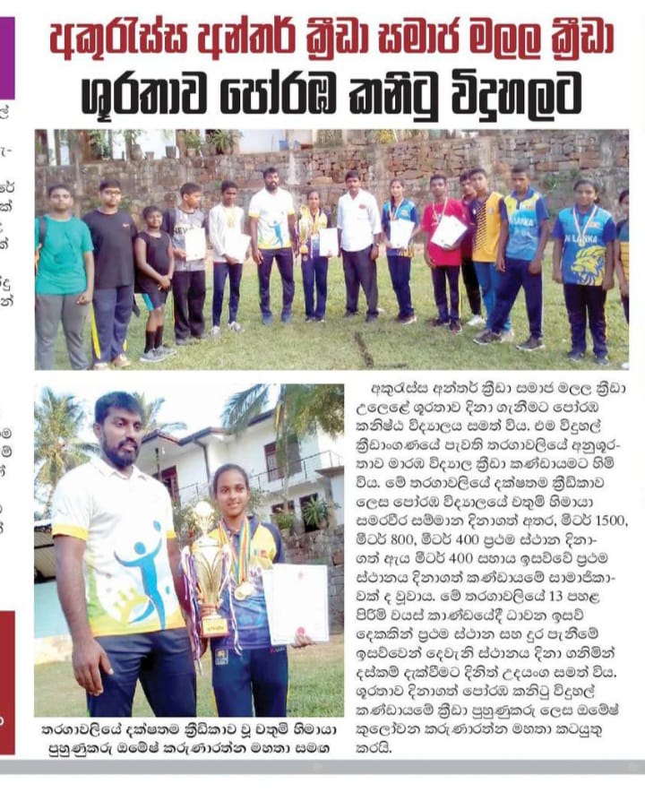 තිස් දෙවැනි ජාතික යෞවන ක්රීඩා උළෙලට සමගාමීව සංවිධානය කළ අකුරැස්ස අන්තර් යෞවන සමාජ ක්රීඩා උළෙල පසුගිය දා අකුරැස්ස පෝරඹ ක්රීඩාංගනයේදී පැවැත්විණි.ඒම ක්රීඩා උළෙලේදී සමස් ශූරතාවය දිනා ගැනීමට පෝරඹ කනිටු විදුහල් යෞවන සමාජය සමත් විය. මෙහිදී කැපී පෙනෙන ක්රීඩිකාව බවට පත් වූයේ පෝරඹ ක්රීඩා සමාජයේ චතුමි හිමායා සමරවීර ක්රීඩිකාවයි. වයස 20 න් පහළ කාන්තා අංශයෙන් තරඟ වැදුණු චතුනි හිමායා, මිටර් 1500, මීටර් 800 හා මීටර් 400 ඉසව් ත්රිත්වයෙන් ප්රථම ස්ථානය දිනා ගත් අතර මීටර් 100*4 සහ 400*4 සහය දිවීමේ ප්රථම ස්ථාන දිනාගත් කණ්ඩායමේ සාමාජිකාවක ද වුවාය.
